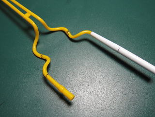 0.5mmの様白線の端面を丸めて2本ピンを立てて支柱にしました。